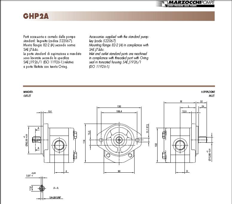 马祖奇MARZOCCHI公司GHP系列齿轮泵是很多中高压条件下应用的优先选择。轴,油口,和法兰配置剧透多样性可选。本公司常备GHP2A系列泵现货。