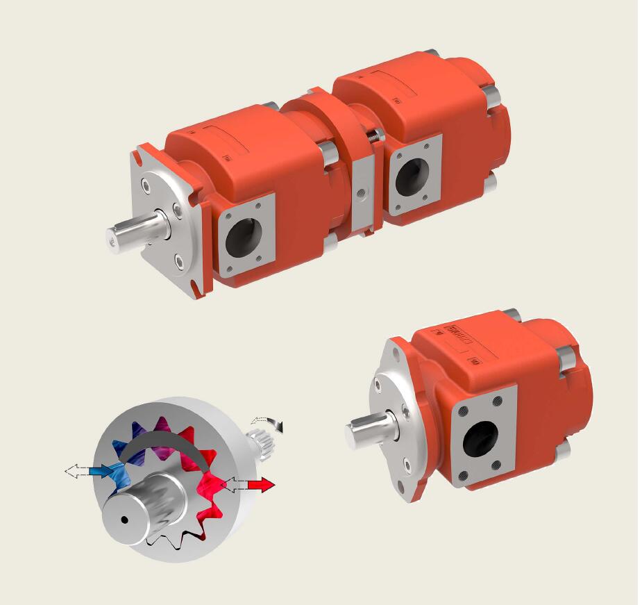 BUCHER内啮合齿轮泵,压力高360bar,寿命长,效率高98%,定速-变频驱动均可,除常规工程机械液压系统外,特别适合低粘度介质使用例如燃料油等